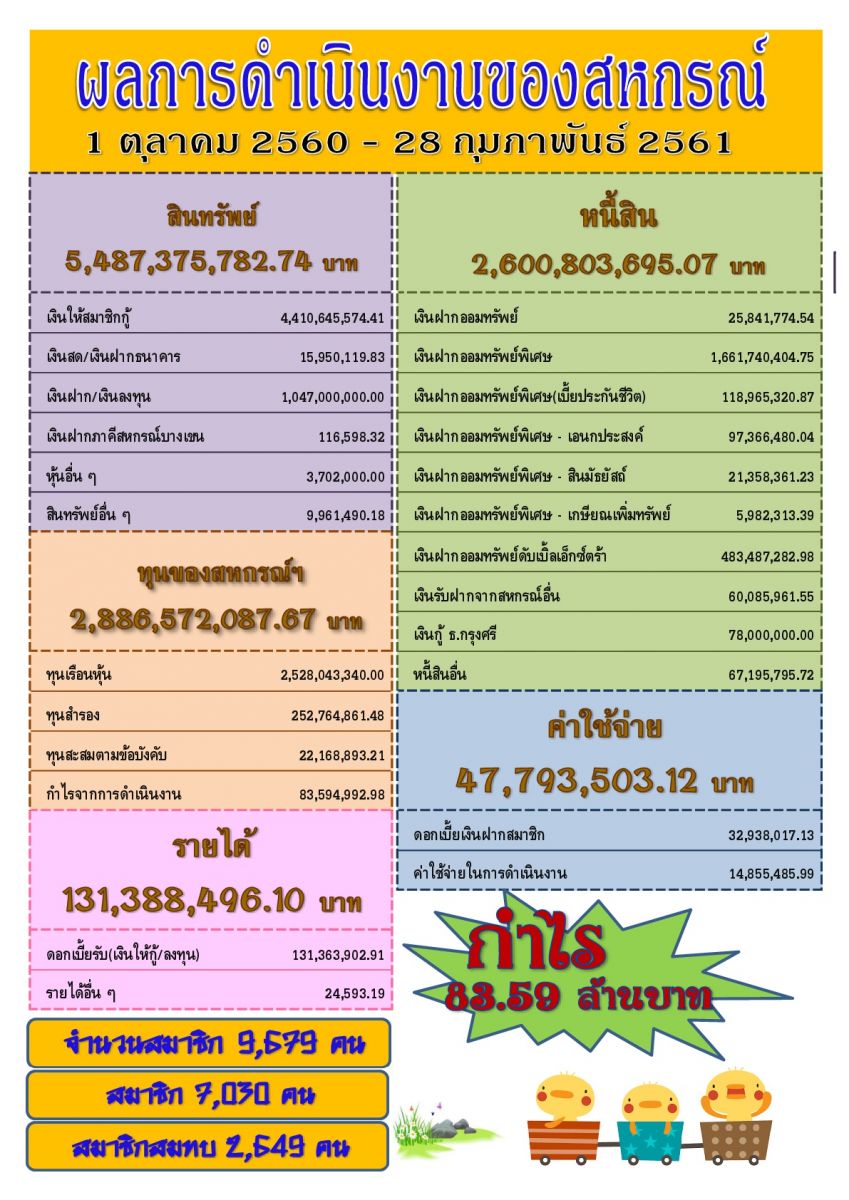 ผลการดำเนินงาน ณ วันที่ 28 กุมภาพันธ์ 2561