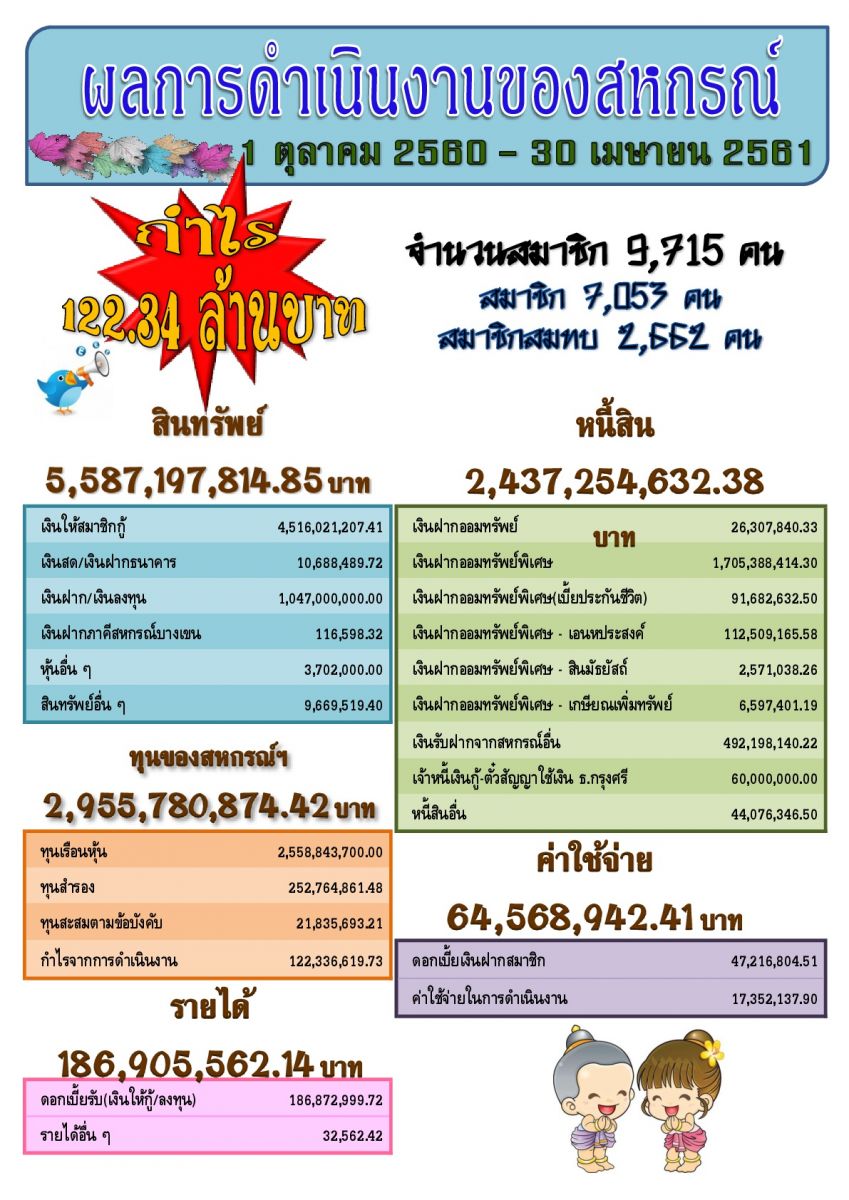 ผลการดำเนินงาน ณ วันที่ 30 เมษายน 2561
