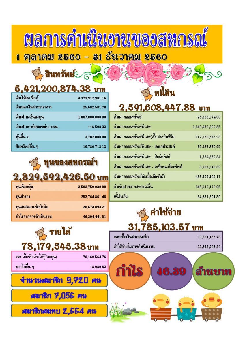 ผลการดำเนินงาน ณ วันที่ 31 ธันวาคม 2560